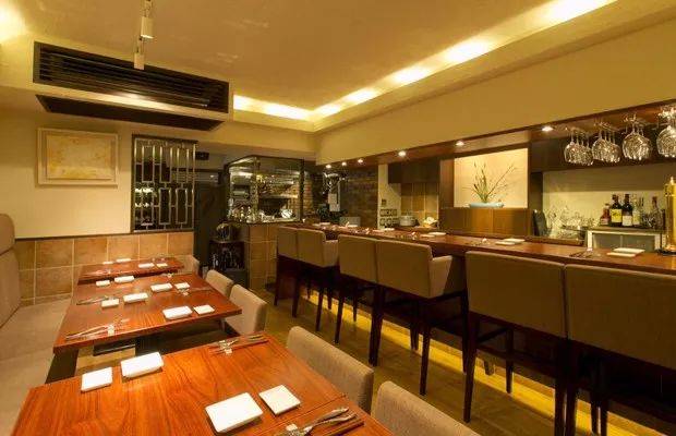 餐厅内有吧台位子和开放性厨房