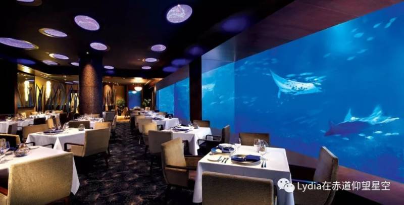 这个巨大水族箱的一侧有一个餐馆Ocean Restaurant,在里面用餐可以边吃边看鱼儿游,一般需要预约,直接walk in的话看运气。人均大约$80。