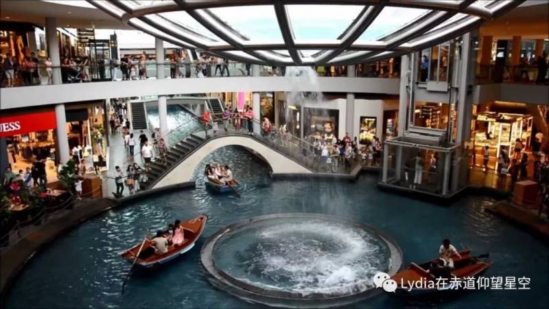 商场室内有个小河道,有小船可以坐着在里面穿行。赌场就在这个流水的旁边。据说这个设计是找风水大师看过的,聚财的水