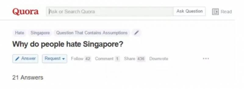 最近,有人在知名问答网站上,问了这么个问题,“为什么大家不喜欢新加坡?” 很快,评论就整个炸开了, 说什么的都有!