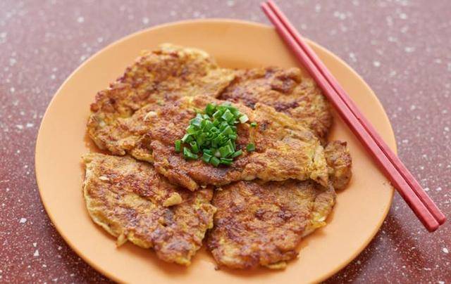 菜头粿是外酥里嫩的油炸萝卜饼,用大量蛋液增加其酥脆程度,一口咬开时里面却是鲜嫩的萝卜内馅,加以少少独特佐料与叁巴辣椒一起融合出独一无二的口感~