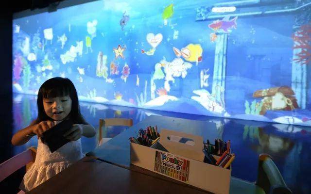 这是一个新媒体展览馆,采用日本最先进的电子互动科技,培养孩子的创意思维。
