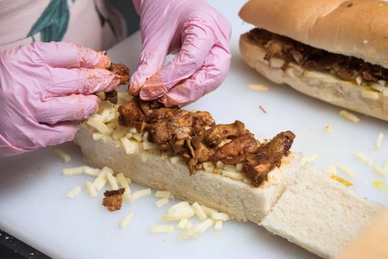 除了奶茶之外,他们还有可以拉丝的芝士吐司,有BBQ猪肉和鸡肉两种口味,新鲜出炉的吐司是可以拉丝的哟。