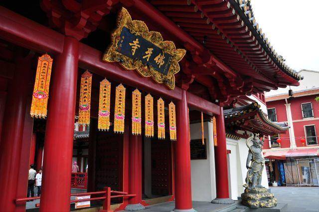 在牛车水怎么少得了寺庙呢?矗立在牛车水大厦前的便是新加坡佛牙寺龙华院。