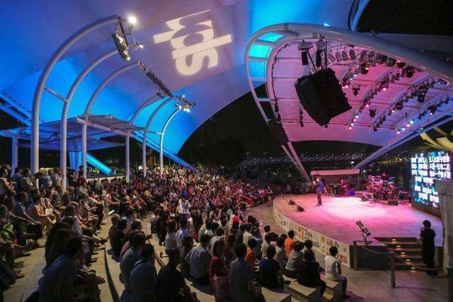 滨海艺术中心户外表演场地时不时会有免费表演。台上的表演者通常是来自狮城各个文娱团体,他们载歌载舞,为观众们呈现不同的演出。