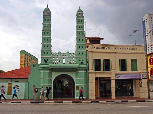 詹美回教堂坐落于桥南路摩士街入口。“摩士”是回教堂“mosque”的音译字,这个名字因街口的詹美回教堂而得名。