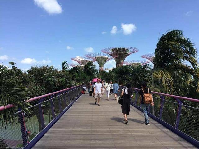 连接两棵 42 米高的擎天树,这就是大名鼎鼎的华侨银行空中走道,它足有 22 米高。胆小的孩子站在上面还是有点心惊,放心,桥十分安全,可趁此机会培养孩子的探险精神。这里能欣赏到滨海湾花园全景,更能找到晴天树和金沙酒店、摩天轮的新奇角度,只要敢想,一家人能拍出欢乐搞笑的创意照片。