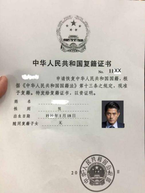 注意:这只代表复籍申请已被批准,不代表已取得中国国籍。