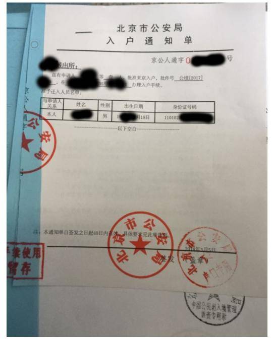 出入境会给人口管理总队发机要函,一周后带复籍证书原件及房产证结婚证等等材料,到位于南三环成寿寺的人口管理总队办理户口手续,人口管理总队会开出一张“北京市公安局入户通知单”(图5),凭此单及人口总队给你的其他材料,外加房产证等原件,到管片派出所落户口办户口本及身份证。身份证号跟以前一样。
