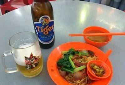 我的一顿饭,小面才三四块新加坡元,啤酒倒是很贵,大概七八块钱,也有卖10几块钱的。