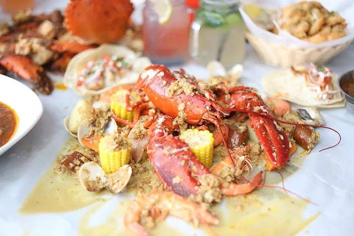 Dancing Crab提供的是正宗的纽奥良菜式,来这里点上一个龙虾海鲜袋(S$111.80++)里面有一只波士顿龙虾、鲜虾、花蛤、玉米和香肠等。