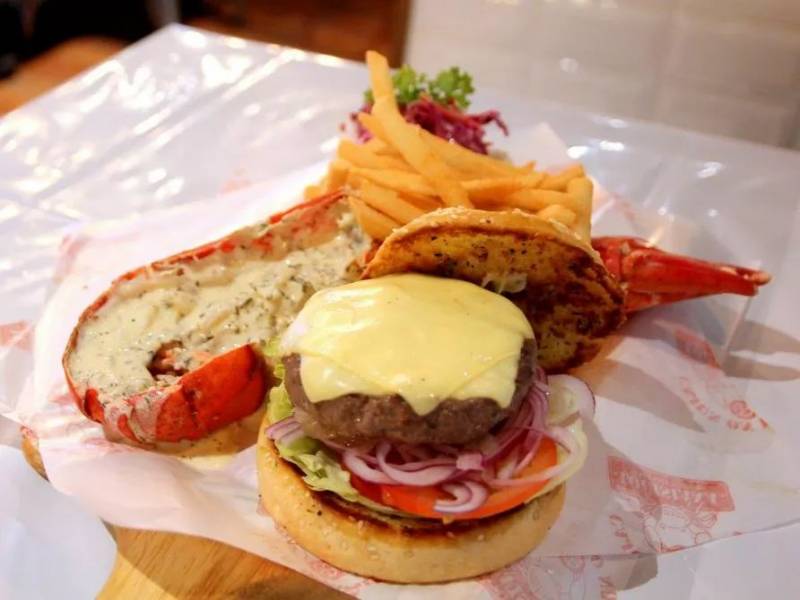 上面这个牛肉汉堡龙虾套餐(S$39.90++)你既可以品尝到用100%优质牛肉做成的肉排,还能享用到半只用香草牛油酱烤制的新鲜龙虾。
