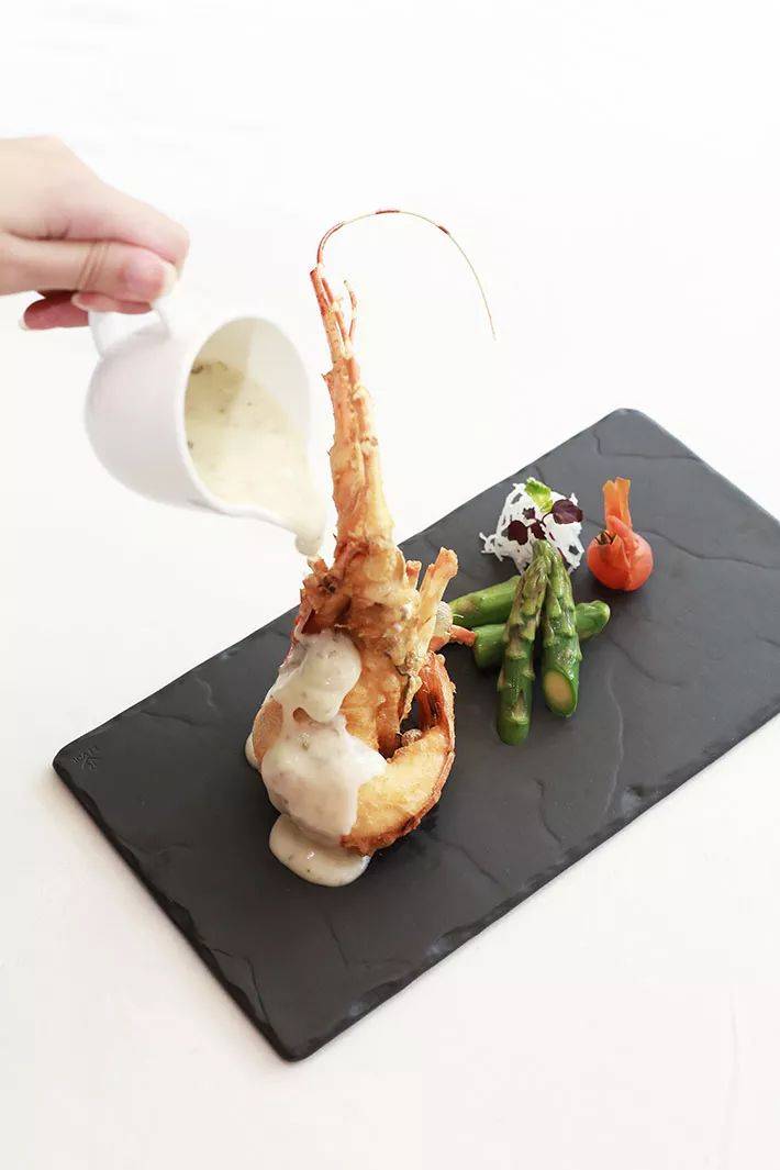 将龙虾拿去油炸,很多人一定觉得有点暴殄天物。Yan宴挑选了个头不是特别大的本地龙虾(时价),厨师掌握了油炸的时间,让龙虾表皮香酥但里面的肉还是Q弹的。再搭配上他们自制的霞多丽白酒汁,完美。