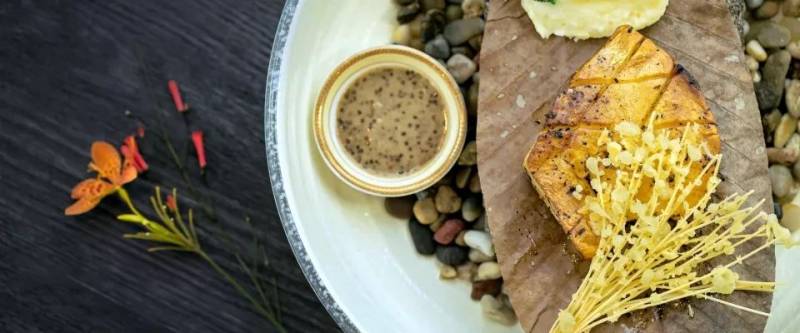 这里用的很多都是时令食材,从外地空运到新,为的就是让客人吃到最新鲜最当季的美食。还有部分菜品用了冬虫夏草和虫草花入菜,让素食更精致更养生。