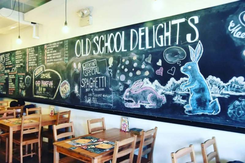 Old School Delights走古早校园风,把咖啡做打造成一个学校的感觉,连餐桌都有课桌的感觉。除了美食这里也有一些旧文具、橡皮擦等怀旧小物