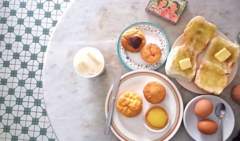 这里售卖的东西不是特别多,主要就是吐司、蛋挞、半生熟蛋还有咖啡。但是小砖块的地板配上大理石的桌子,不管怎么拍都特别上镜,所以在INS上也非常火。