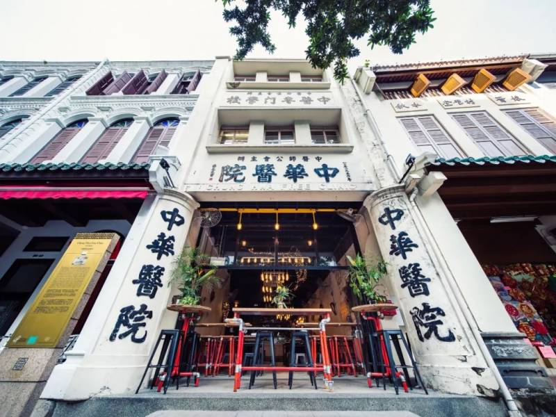 旧医院改建的西餐馆十分有特色,走在 Telok Ayer Street很难不注意到这间店面,“中华医院”几个大字配上红艳艳的桌角,即复古又有设计感。