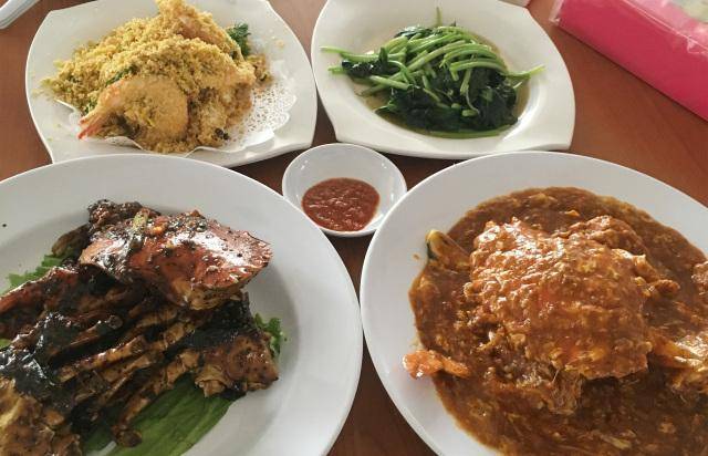 我们点了麦片虾、黑胡椒蟹、辣椒蟹和炒素菜。这么多菜才100多新币。尤其黑胡椒蟹真是强推强推强推!现在想到都会流口水。辣椒蟹对于咱重庆人来说,不怎么辣,口味不够重~还有麦片虾也很棒!!黑胡椒蟹和麦片虾,答应我去新加坡一定要点好吗!!