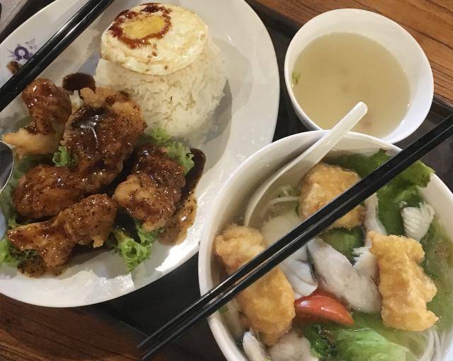 晚饭依旧是去我们的最爱大食代,我点的双鱼粉,魏魏点的黑椒鱼饭。她自从吃了黑胡椒蟹后,就成了黑胡椒的脑残粉了。