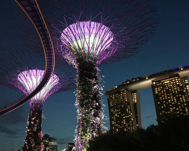 吃好后就去了滨海湾花园,着急去看7点45的灯光秀,从云雾林急忙忙走到超级树。超级树是不需要门票的哦。但上去的话需要买空中走廊的门票。