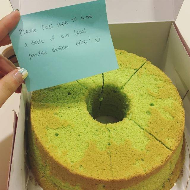 小新注:这个就是新加坡非常有名的“绿蛋糕”——斑兰戚风蛋糕。