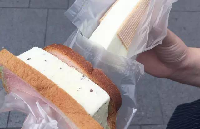 逛到大概下午四点,就开始赶去摩天轮那里了!在去地铁站的路上,看到很多卖冰淇淋砖的小车车(小新注:其实就是传说中的面包夹冰淇淋呦)。我们也尝尝鲜,试了巧克力碎和草莓!真的很好吃。