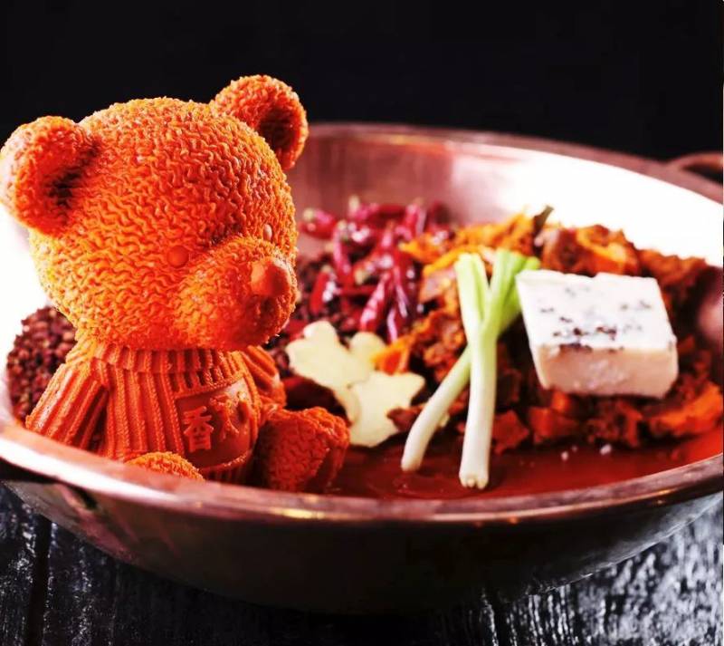 为什么说它高颜值?因为它们特有的小熊、HiKitty的牛油锅底,美艳的芭比和牛,满满一排的一米羊肉,既有创意又上照,颜值高得让人都不舍得吃了~