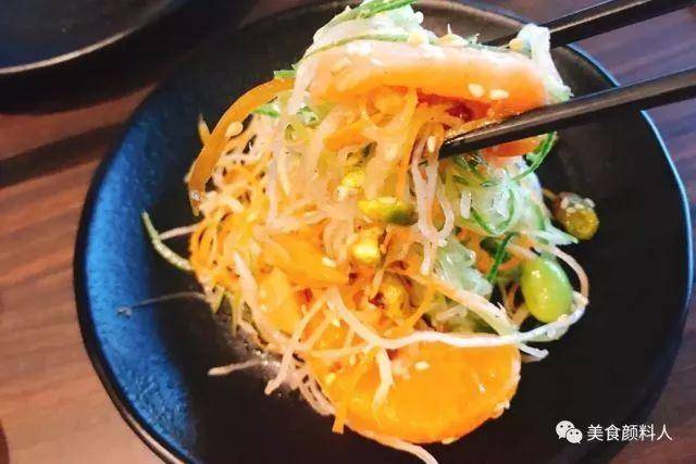鱼生,不多絮叨,光是三文鱼的新鲜程度已经加分。放了橘子瓣的鱼生,不光意义好,口感更好。