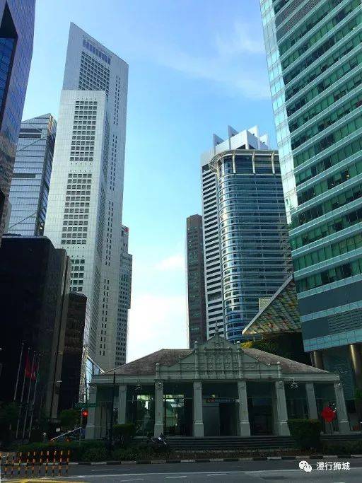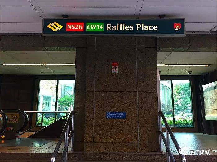 从地图上看,莱佛士地铁站是距离鱼尾狮公园最近的一个地铁站,位于市中心的金融区,周围高楼林立。低矮的,具有殖民特色的莱佛士地铁站口就显得特别突出!