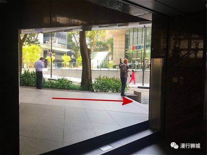 过了马路后转左,你会看到前面不远处有一个棕色的方向牌,箭头所指的方向就是鱼尾狮公园了。