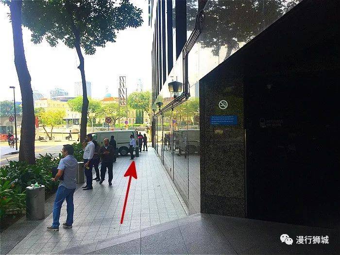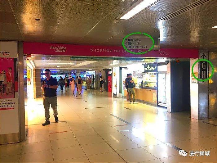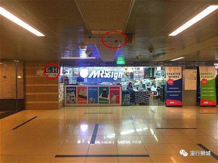 莱佛士地铁站是一个大站,道路四通八达,路口很多,上来以后先找好H口方向(注意找绿色圈的方向牌)。