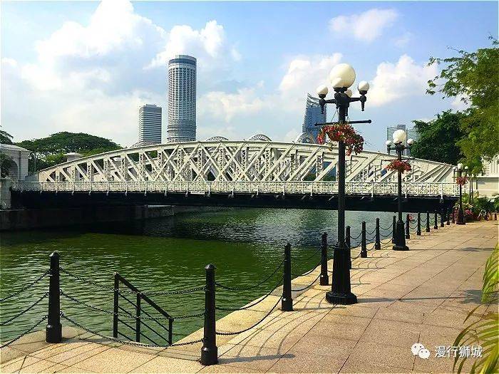 因为我们今天的目标是鱼尾狮公园,所以我们就不过桥,直接继续沿着河岸往前走。