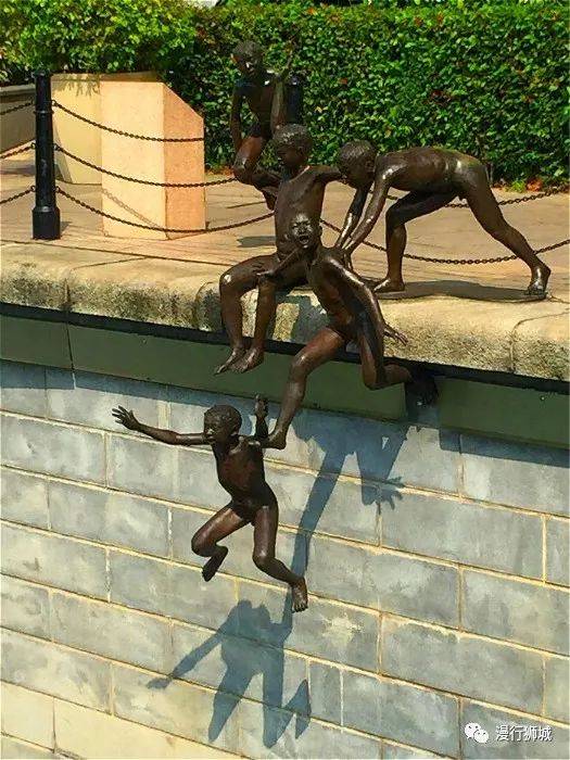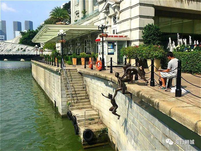 看到河畔的一组塑像了吗?这组雕塑就叫做《第一代》,是新加坡先驱雕塑家Chong Fah Cheong的作品。五个赤裸男孩雕像,好象要跳入河中游泳——这是第一代到新加坡的移民的孩子常做的体育活动。