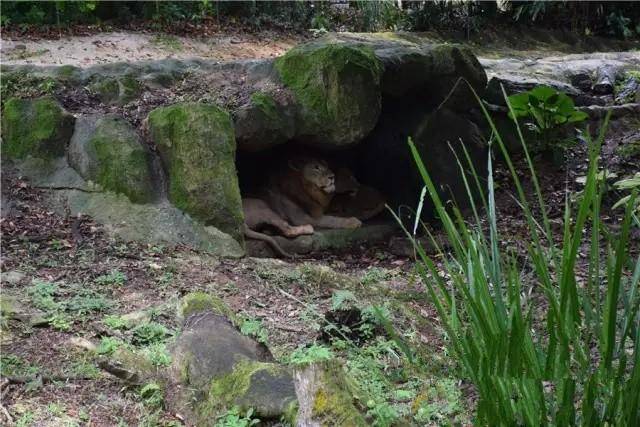 狮子们在洞里,居然是3只狮子在和平共处,想知道哪只是电灯泡。。