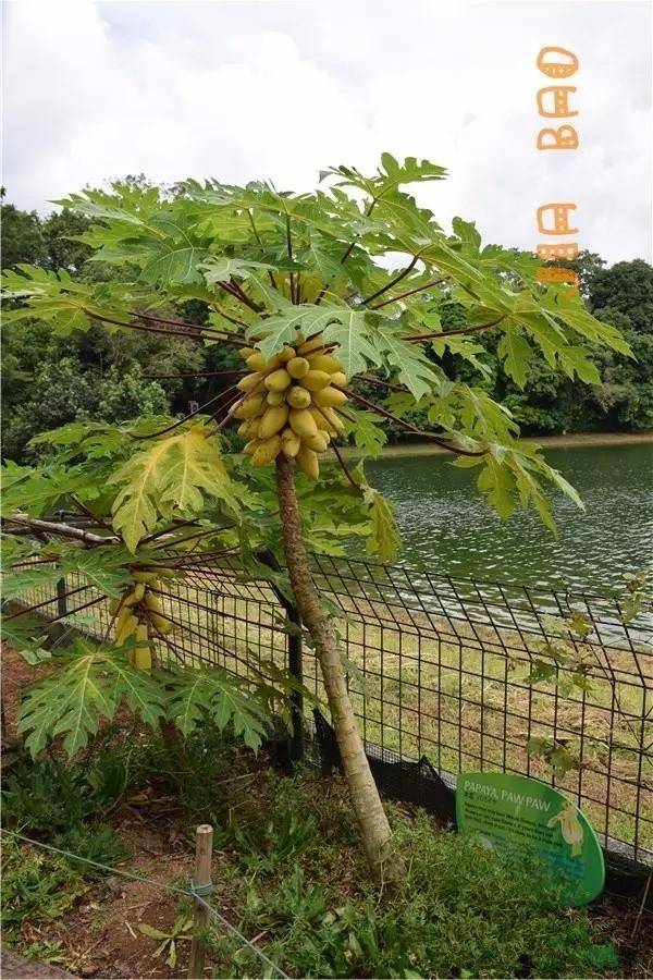 在新加坡动物园最东边,有一片大花园,可以看湖景,还有一片蔬菜科普园Tropical Crops,头一回见到木瓜树。。。
