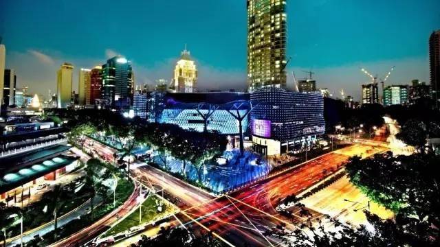 乌节路是新加坡一条繁华的商业街,道路两旁商场林立。