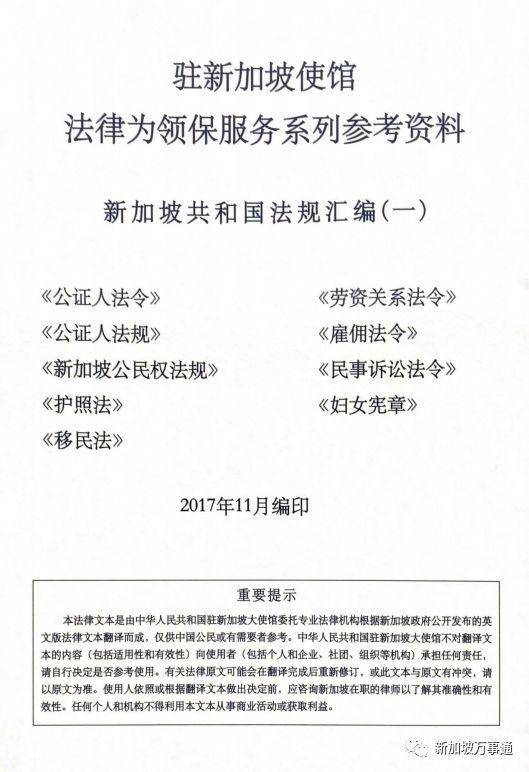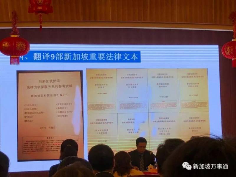 大使馆为让中国公民更方便了解和遵守新加坡当地法律规定,将大使馆领保工作中经常涉及的9部新加坡法律译成了中文。