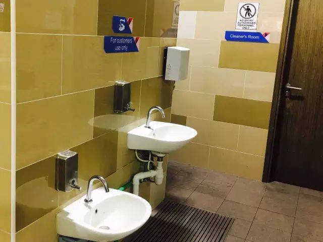在小贩中心的各处,都能找到洗手池。连为大人孩子设置成不同高度的细节,都考虑周全了~