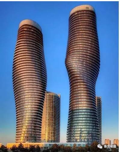 这是加拿大安大略省的一个双子公寓楼,弯曲的形状仿佛橡皮泥被捏出来的样子。