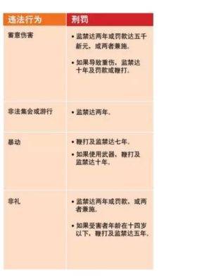 动手打人有罪,伤人罪的刑罚视罪行的严重性而定。较轻微的罪行,违法者可被判刑长达1年,或罚款高达1000元,或两者兼施。如果使用武器伤人,则罪加一等,可被判刑长达5年,或罚款,或鞭刑。如果导致他人受重伤,违法者可被判刑长达7年及罚款,或鞭刑。如果受害者是女佣,违法者面对的刑罚将比一般的伤人刑罚高一倍半。