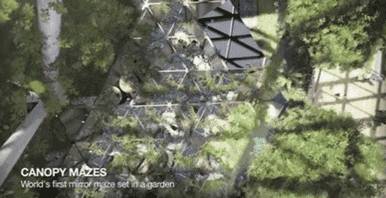 迷宫世界突破传统的设计理念,包含了两个500平方米、风格迥异的迷宫:树篱主题迷宫和镜子主题迷宫。