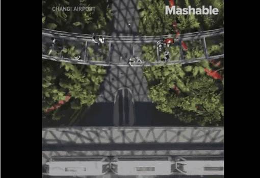 步行网道则悬挂在25米的高空中,游客在漫步的过程中就可以直接俯视“星耀樟宜”的美妙景象。