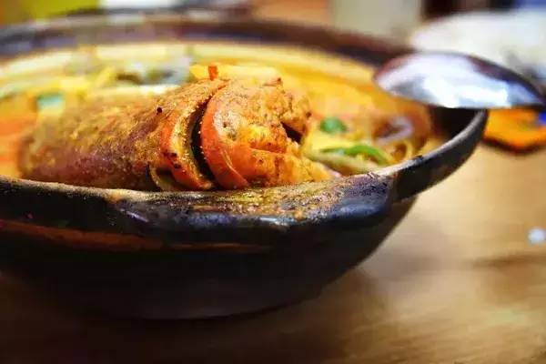新加坡咖喱鱼头是印度、中华和马来文化相互融汇的完美结合。红鲷鱼头与辛辣的咖喱香料,各色蔬果一起慢炖。不太吃辣的可以学当地人把馒头蘸来吃,来中和辣味。鱼头分量保证很足,不用点太多菜咯,当然价格也很实惠。