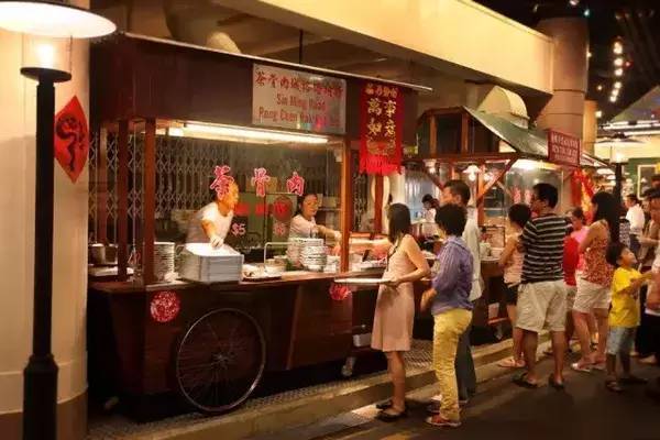 80年代的新加坡电视可以看到,一到傍晚,小摊贩们就排起了长龙,各自一辆手推车,配备临时餐桌和餐椅。
