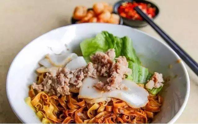肉脞面是一道历史悠久的街头名吃。先把烫熟的面调以秘制酱料与陈醋,配上肉碎、肉片、肉丸、卤香菇和青菜,再加点风味辣酱,足以大饱口福。是潮州人的骄傲之作。虽然海南鸡饭算是新加坡象征性的国家菜,但肉脞面总是排在新加坡人最爱的前三名。