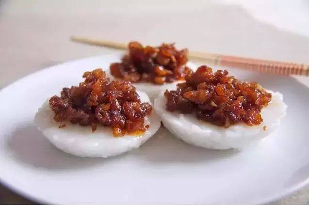 水粿是源自广东潮汕的传统小吃,也在马来西亚和新加坡流行,在新加坡一带通常念成潮州话的“Chwee kueh”。是新加坡的街头小吃,后由路边摊搬迁到小贩中心。水粿用白米磨成浆制成的粉团,放在特定的模子蒸成形。馅料用菜脯、葱、虾米、辣椒煮成,吃时再加上一些辣菜脯,通常都是作为早餐或下午茶。