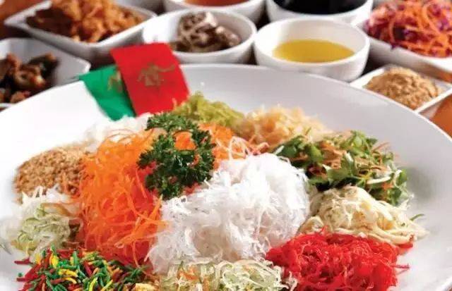 捞鱼生的典故源自粤语发音中所喻意的“风生水起”之意。捞鱼生通常是农历新年宴客时第一道上桌的开胃菜,配料有白萝卜丝、青萝卜丝、红萝卜丝、灯笼椒、芜菁、腌红姜、生鱼片、脆饼等,再撒上梅子酱、五香粉、淋上麻油等调味料。吃的时候,亲朋好友围炉一同用长筷子夹起这些食材,一边大声说出心中愿望。据说,食材夹得越高,来年的运气便会越好。