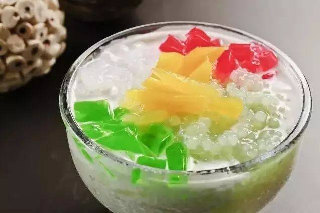 摩摩嚓嚓源自马来,是东南亚三大小贩甜品之一,有热冷两种吃法。用椰浆水煮芋头块和番薯块,再加入西米,调入椰汁,最后放上缤纷的热带水果。奶香,椰香,芋香,果香,色彩缤纷,相映交辉。
