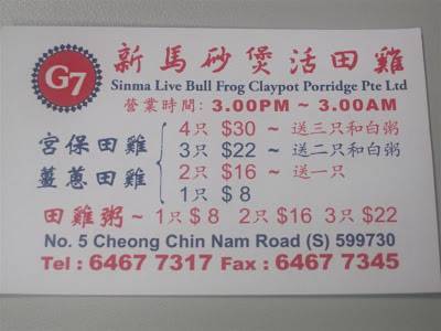 田鸡粥可以算是新加坡的一大特色了。嫩滑的田鸡加上糯糯的大米粥,实在是太好的一个组合了。(谁发明的太聪明了!)一般人来新加坡的游客都知道芽笼有一家最著名的明辉活田鸡粥,可是对于住在西部的小伙伴来说,跑到芽笼吃一碗田鸡粥恐怕实在很麻烦。所以,这里推荐一家新马活田鸡粥,味道一样好哟。