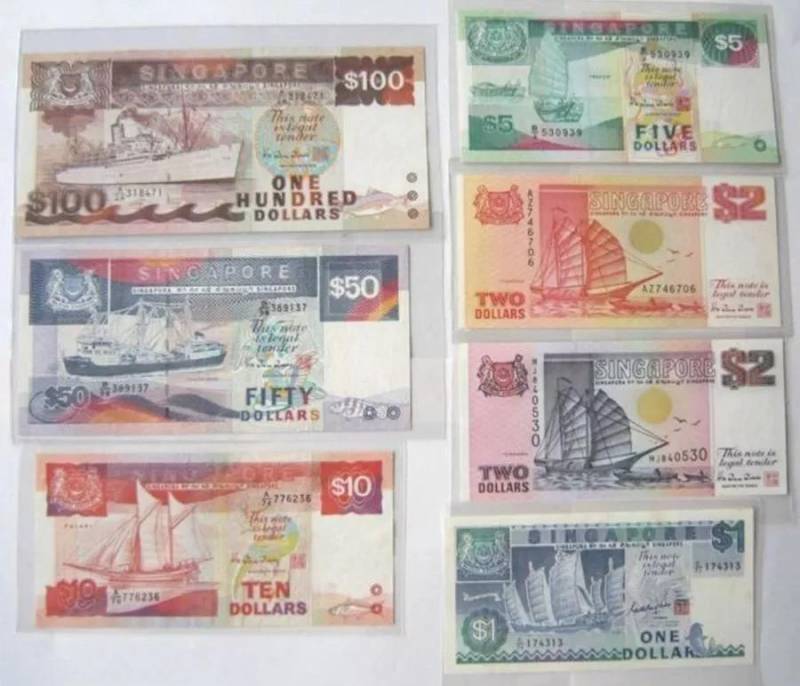 以前纸币上的图案是1984年的船舶系列。这个系列向新加坡的航运历史致敬,每一种都代表了一系列的船舶,从商船到散货船。